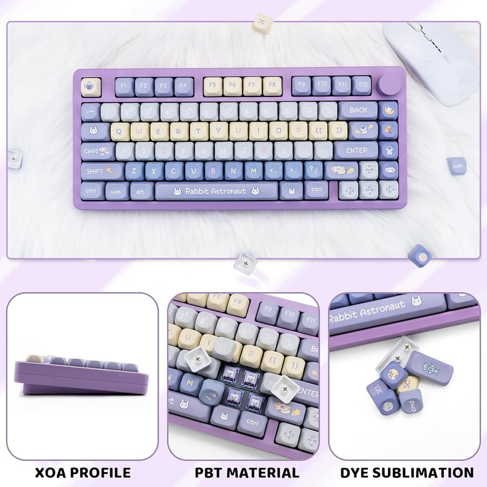 ☁️【Widely Compatible】This keycap set contains 138 keys. it can fit most 61/64/68/84/75/87/96/104/108 mechanical keyboards.
