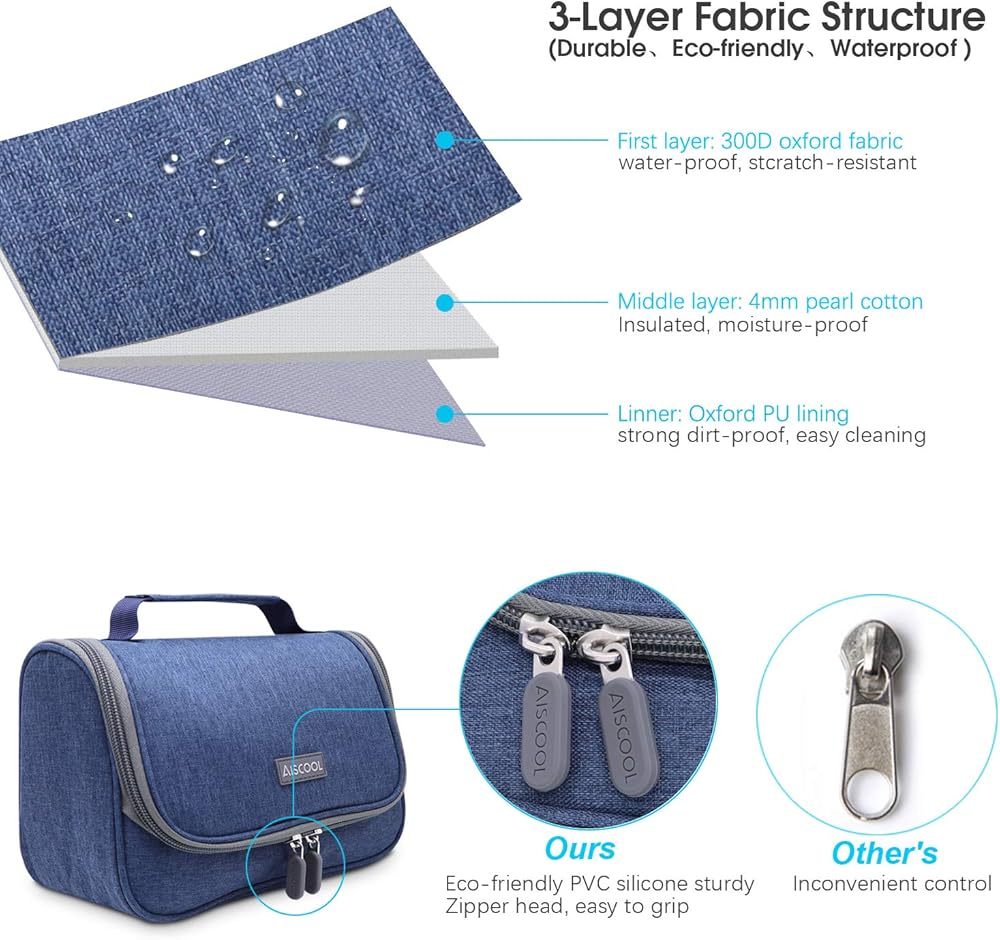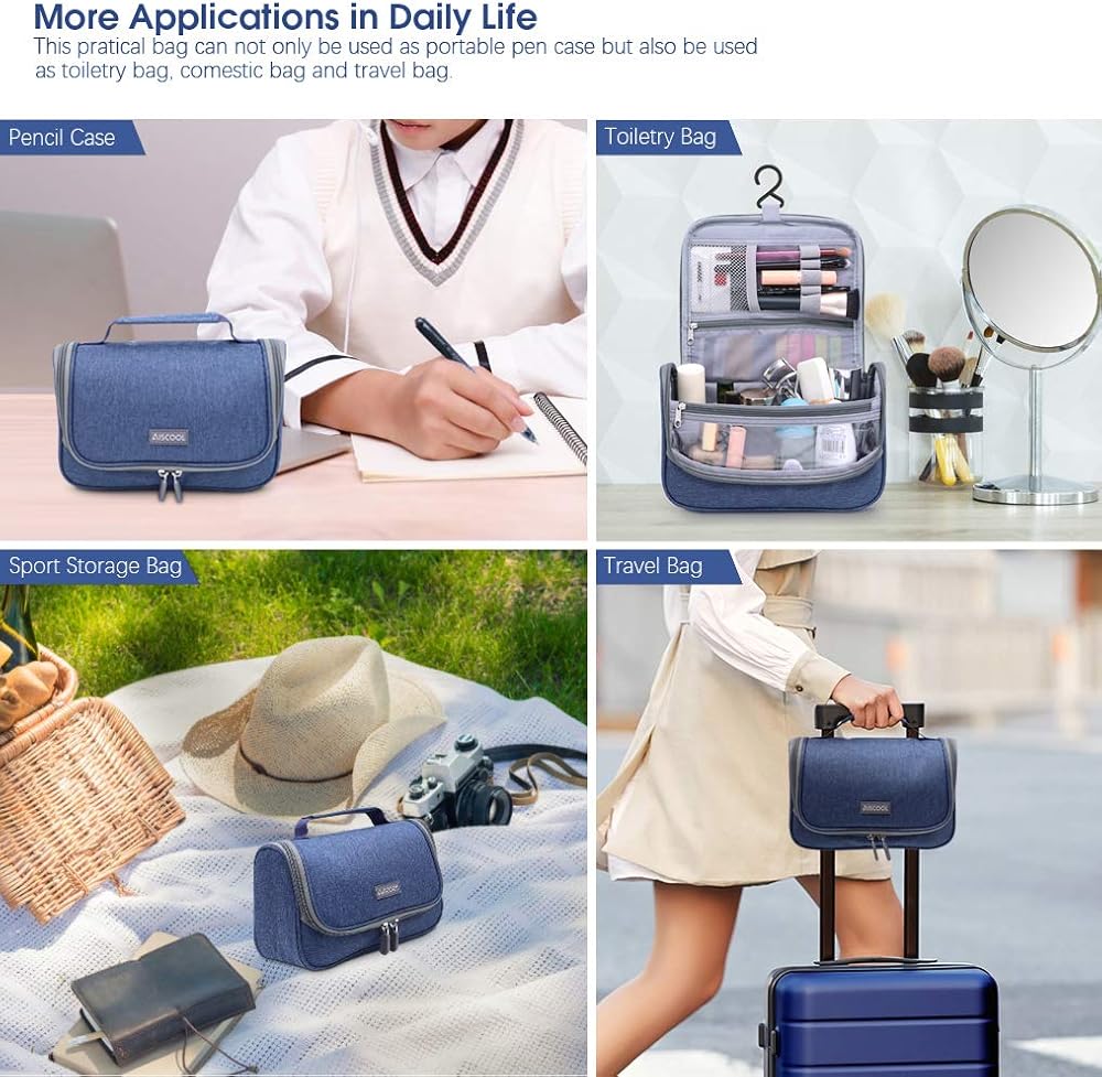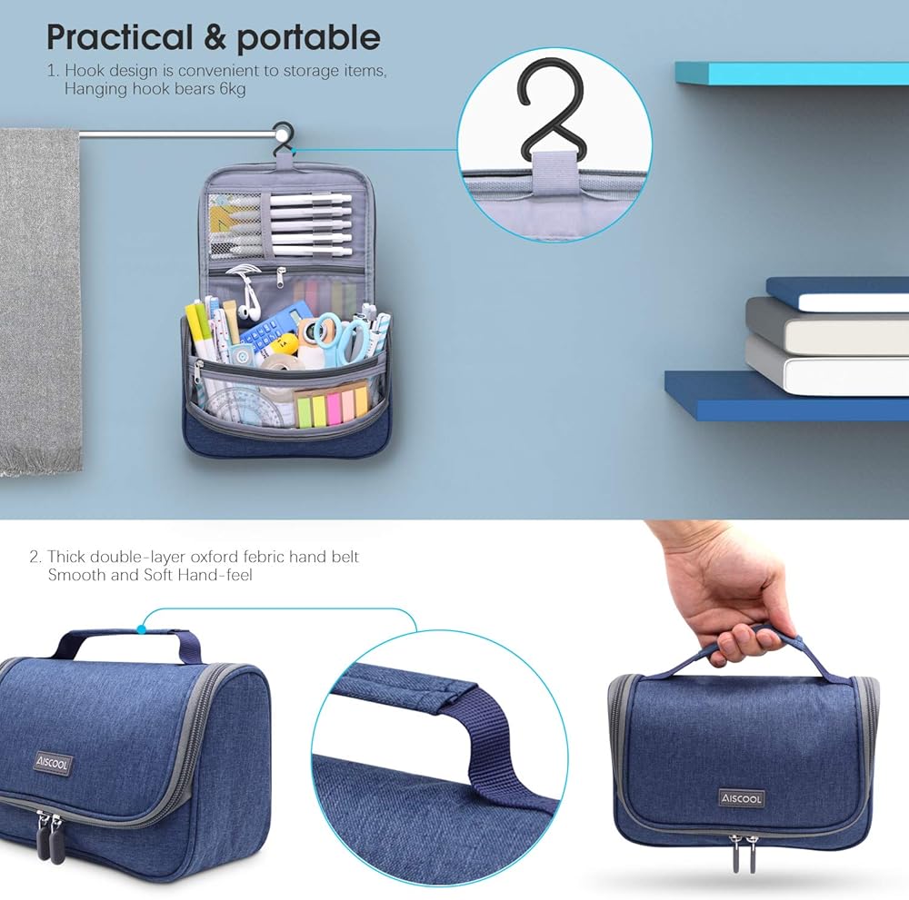 Aiscool Big Capacity Pen Pencil Case Holder Bag Pen Organizer Pouch Stationery Box Oxford Cloth Dry-wet Separation Portable Travel Hanging Bag Toiletry Bag for School Home Office (Blue)