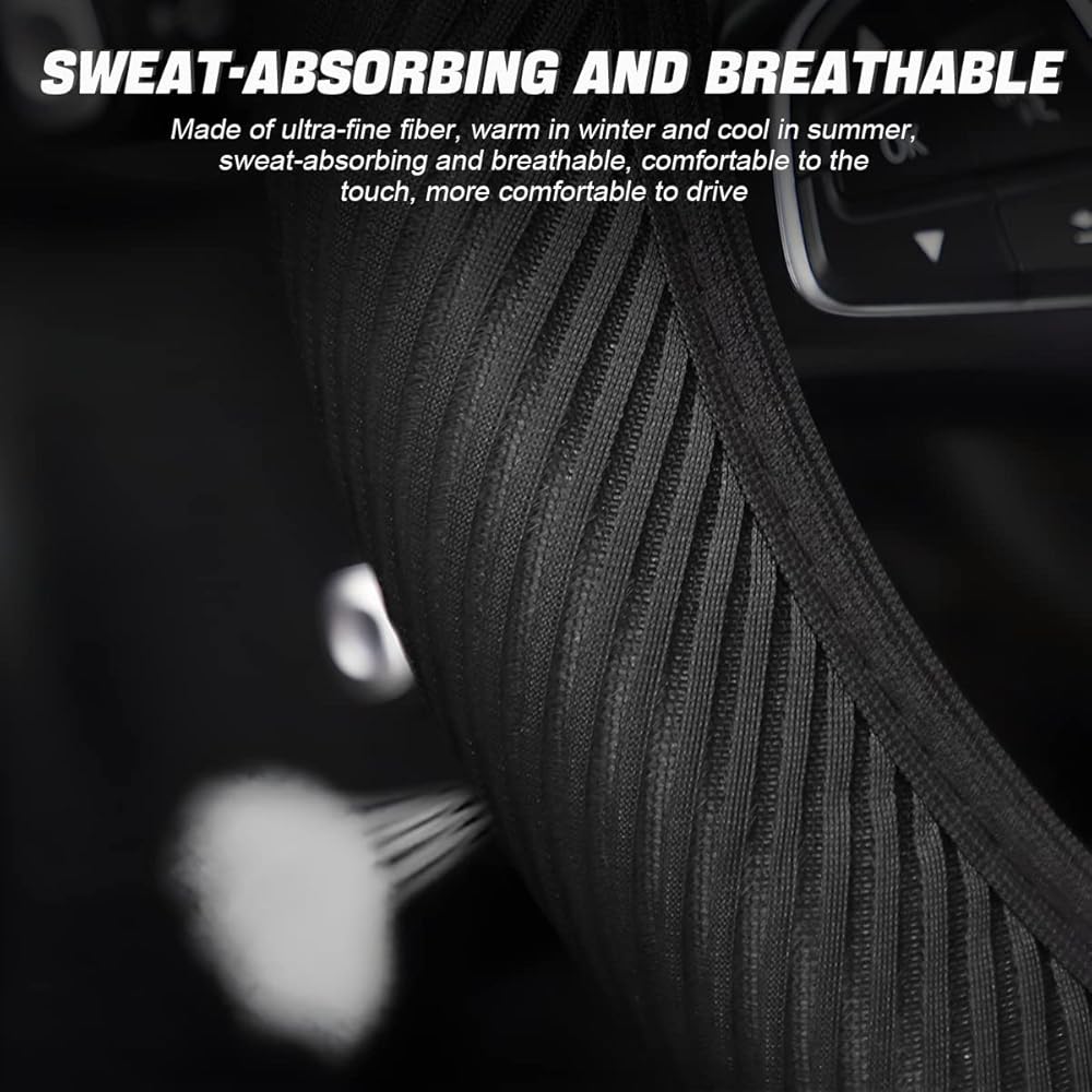 【Soft Material】: This steering wheel cover is made of fine and soft striped mesh, which has very good breathability and softness. It also has anti-slip and anti-sweat function, warm in winter and cool in summer, making it a suitable car accessory for year-round use. It can be reused for a long time to protect your steering wheel from sunburn, scratches, fading, wear and tear, and soiling.