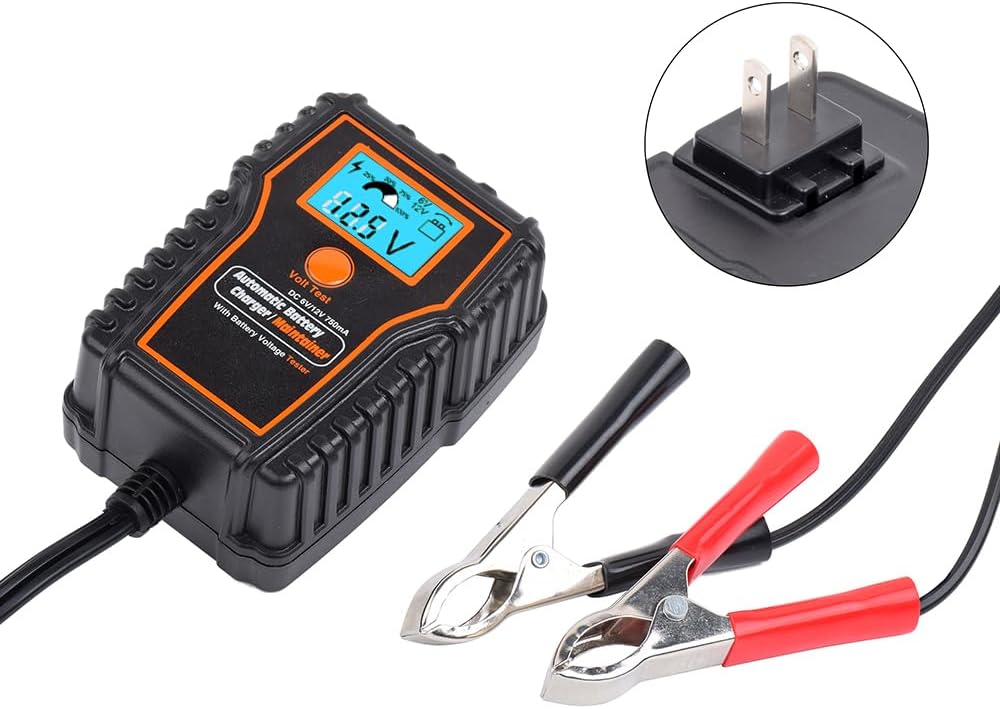 【Smart Battery Maintainer】Fully automatic 0.75 Amp battery charger maintainer keeps stored lead-acid batteries charged and maintains lead batteries. Automatically senses voltage 6V or 12V allowing use for multiple batteries.