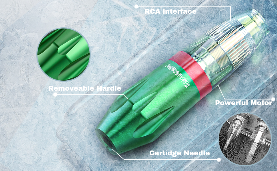 【Removable Handle】Wormhole wireless tattoo pen has a detachable handle, which can be removed for cleaning and autoclaving for easy repair or replacement of parts to ensure hygiene while tattooing.