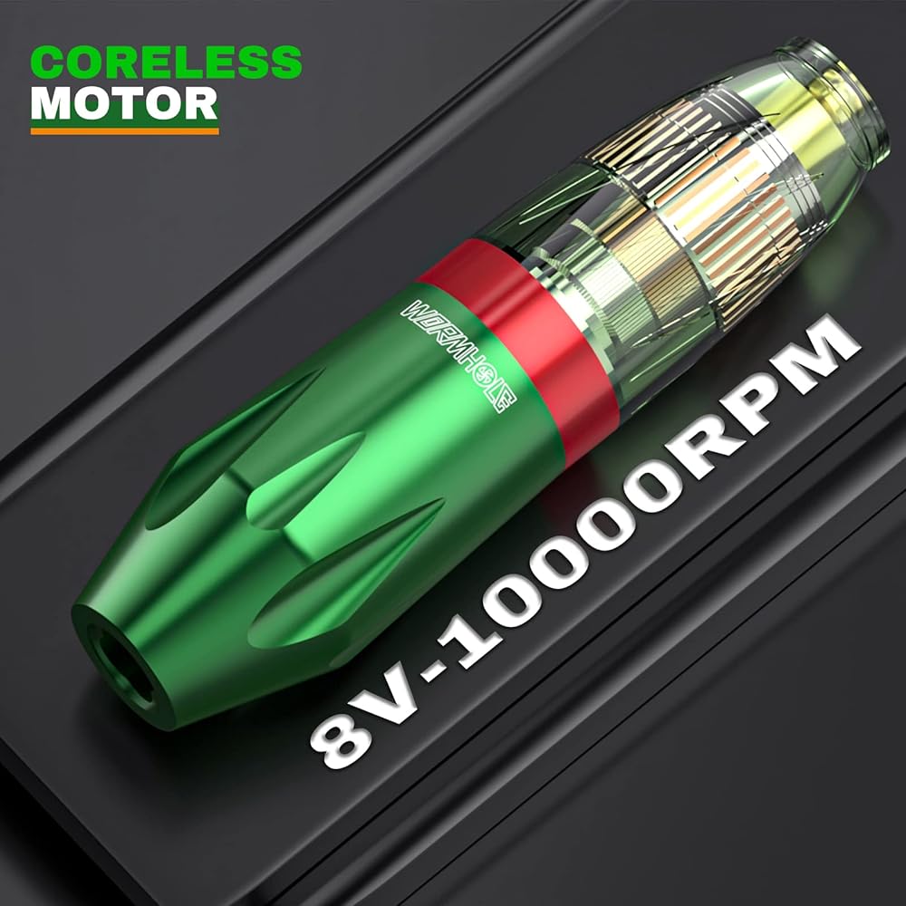 【Coreless Motor】This tattoo machine uses Wormhole coreless motor,8V-10000rmp, with stable output, low vibration, low noise, and does not get hot when working for a long time, creating a good tattooing experience for you.