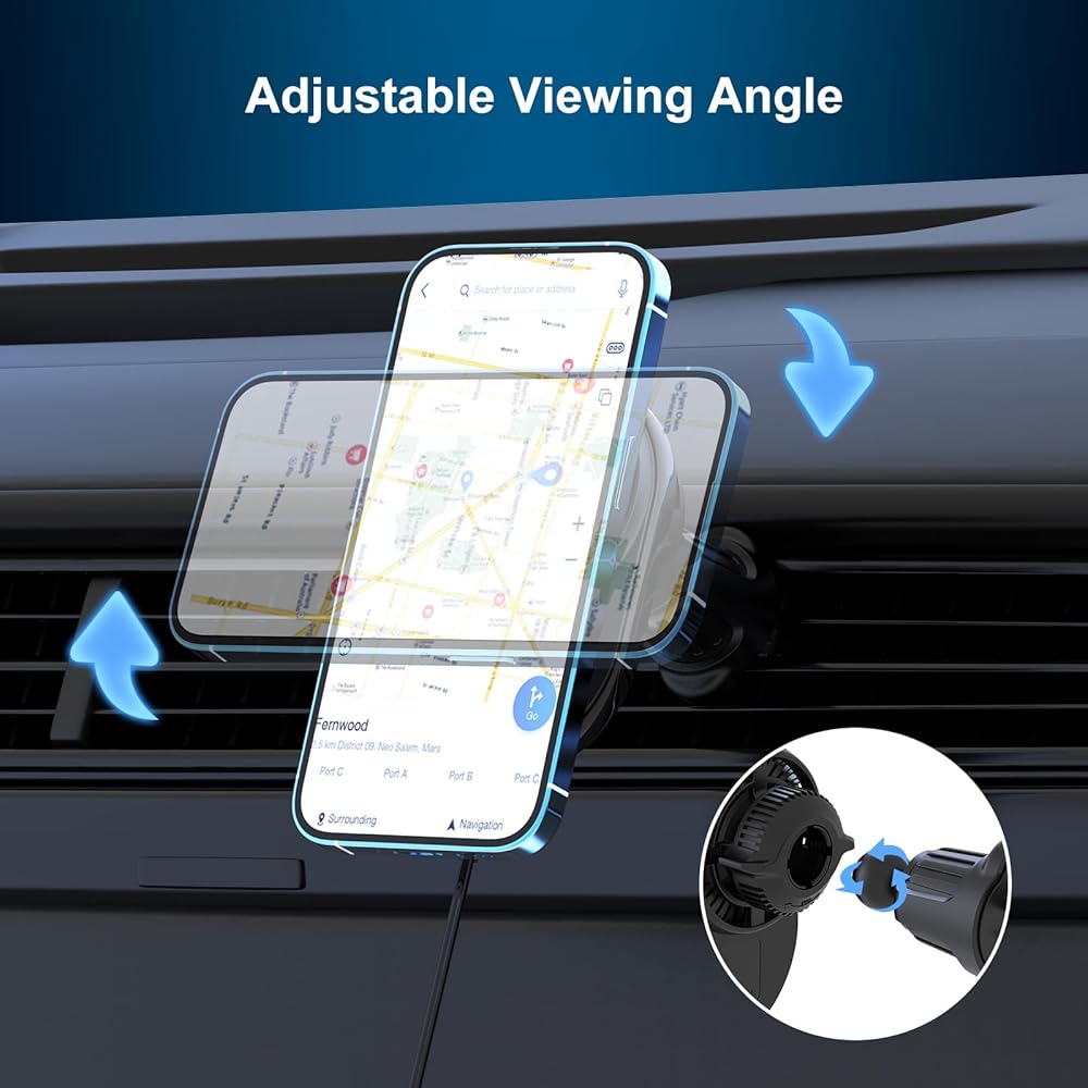 【360° Free Rotation】The magnetic car charger can be rotated 360 degrees, making driving safe and comfortable, allowing you to adjust the best viewing angle by quickly switching from portrait to landscape. Whether you need to check your phone's GPS or take a call, you can easily adjust the angle to suit your needs.