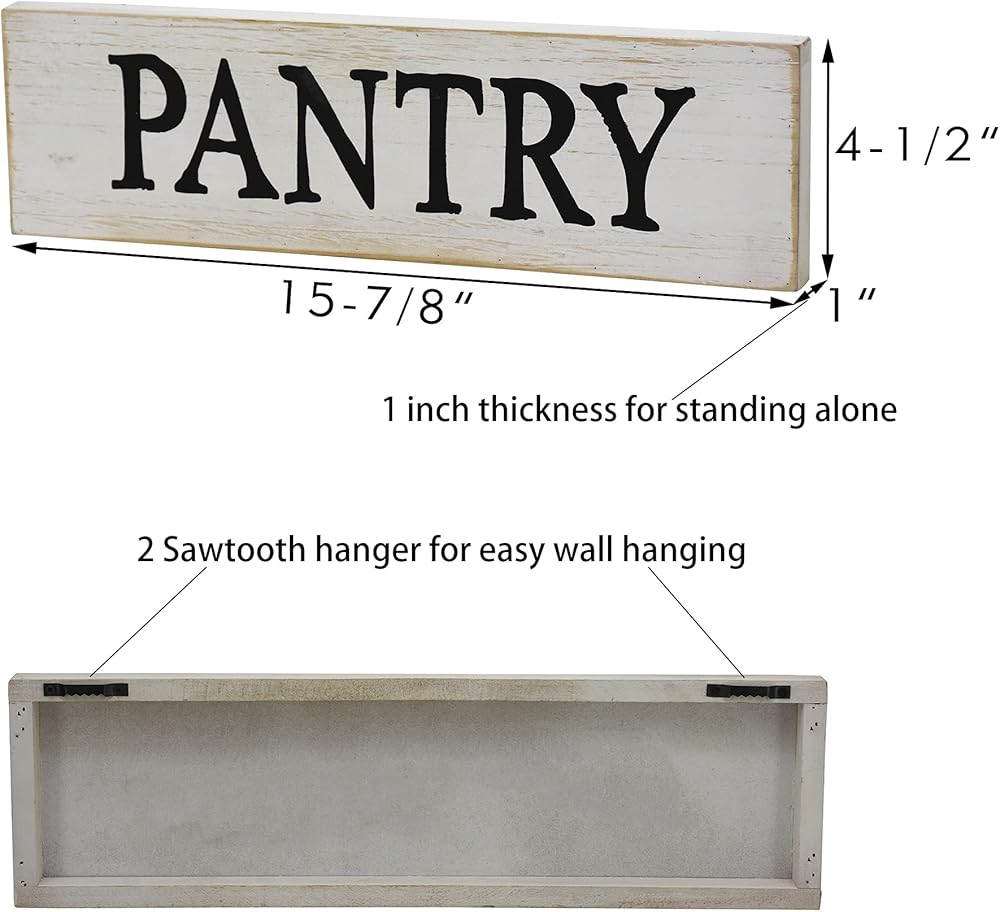 Pantry Whitewashed Wood Wall Sign, Rustic Farmhouse Wall Hanging Decor, 15.75 x 1 x 4.5 Inches