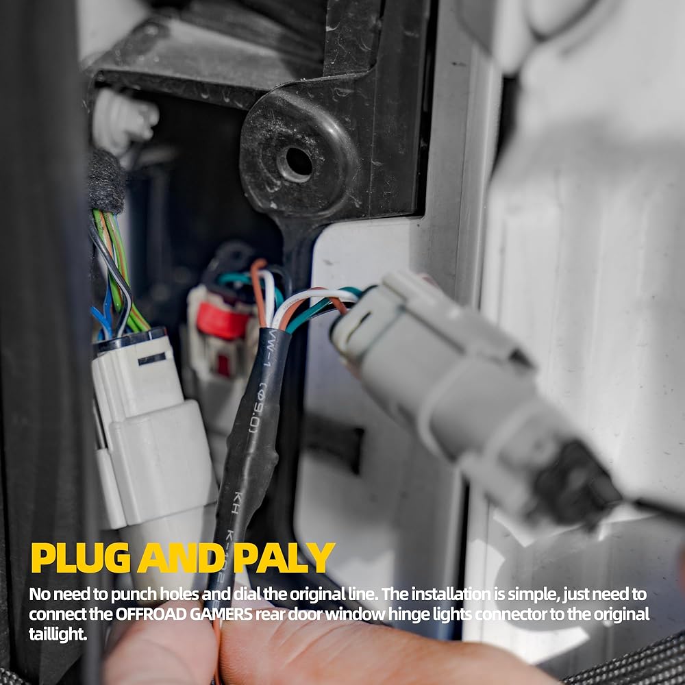[Easy to Install] - No need to punch holes and dial the original line. The installation is simple, just need to connect the OFFROAD GAMERS rear door window hinge lights connector to the original taillight.
