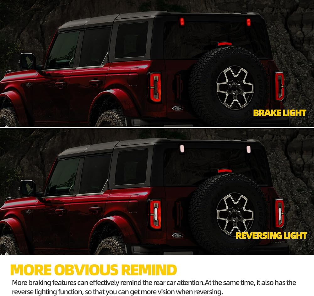 OFFROAD GAMERS Bronco Rear Window Hinge Lights Plug and Play High Mount Stop Reversing Lights Compatible With Ford Bronco 2021+ Bronco LED Brake Running Reversing light