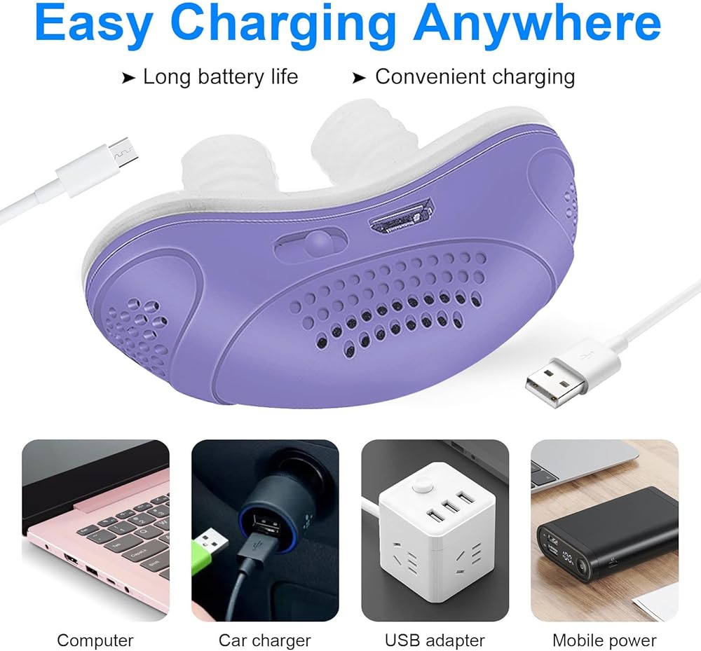 Electric Anti snoring Devices, Snore Stopper with Double Eddy Current for Comfort & Easy Breathing, Effective Snoring Solution for Men & Women All Nose Shaped to Improve Sleep, Purple, 1pcs