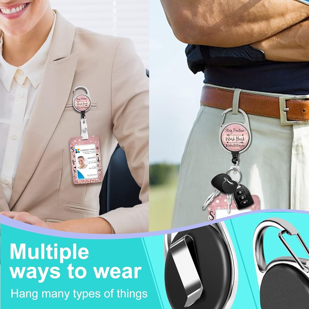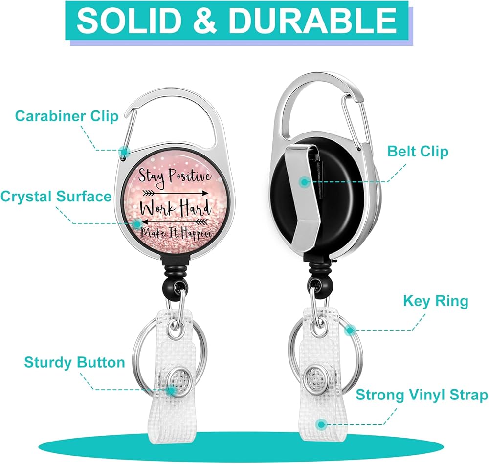 [Heavy Duty Badge Reel]:23inch retractable funny id badge reel, convenient to scan in and out of the office. Metal carabiner hooks & belt clip to firmly clip on belts, pockets, and backpacks. Max load weight 4.5oz, or 8 keys. Very durable and stretchable.