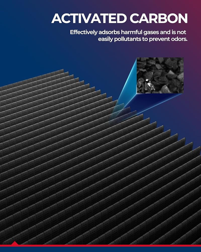 [99% Purification Rate] KAX cabin air filter is made of long-fiber electrostatic cotton, activated carbon, and chemical fabric, which can effectively absorb pollen, dust, soot,and other small particles