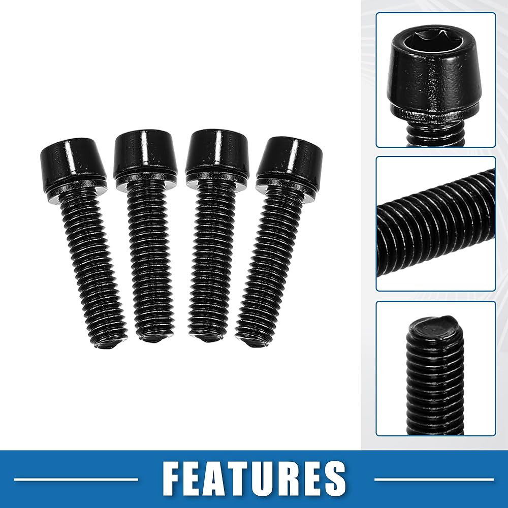 Tapered Bolts Screws for MTB Bike Bicycle Stem Durable M5x20mm Socket Head Cap Bolts Screws Nuts Steel Black (Set of 4)