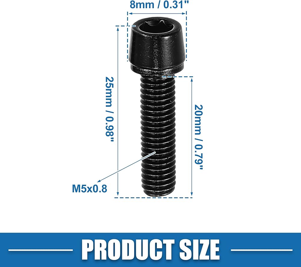 - Replacement For - Bike Hex Tapered Bolts: Thread Size: M5x0.8, Stem Length: 20mm / 0.79", Total Size: 8x25mm / 0.31"x0.98"(D*L)