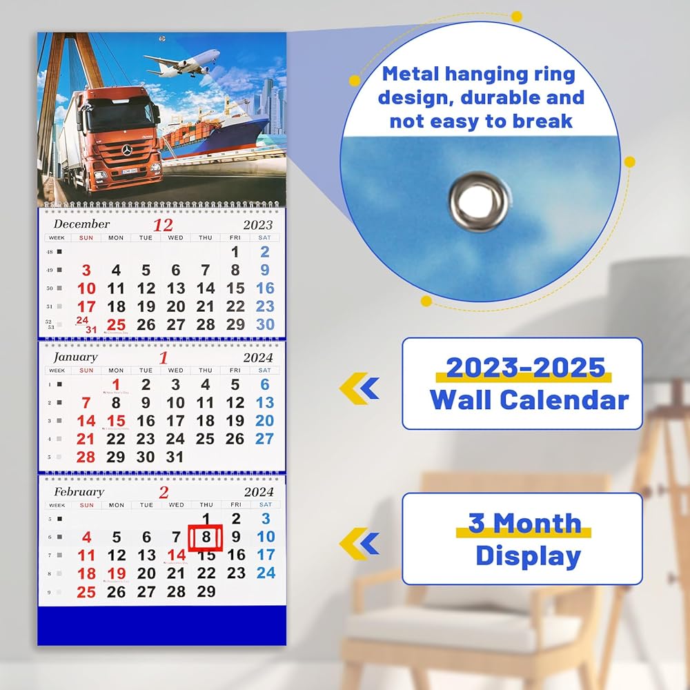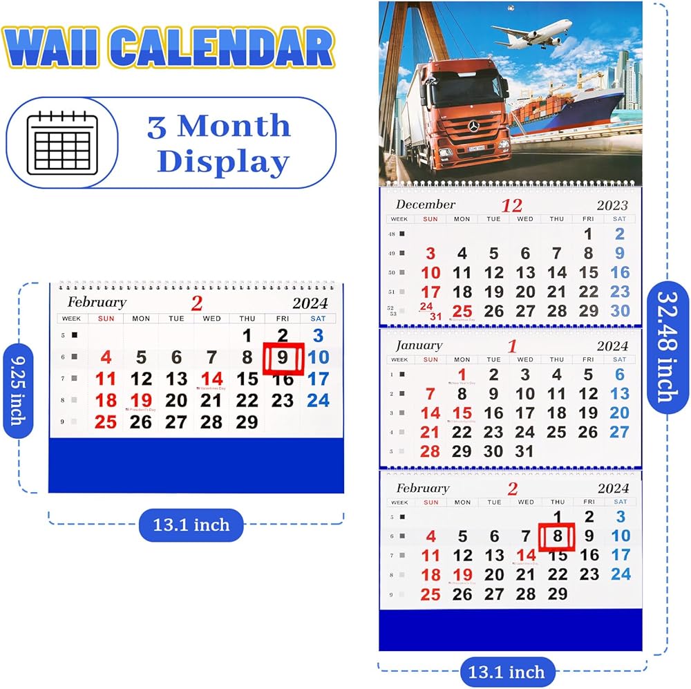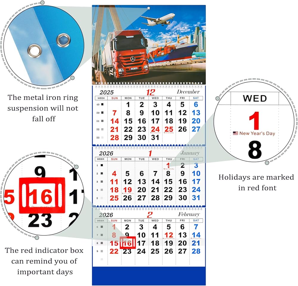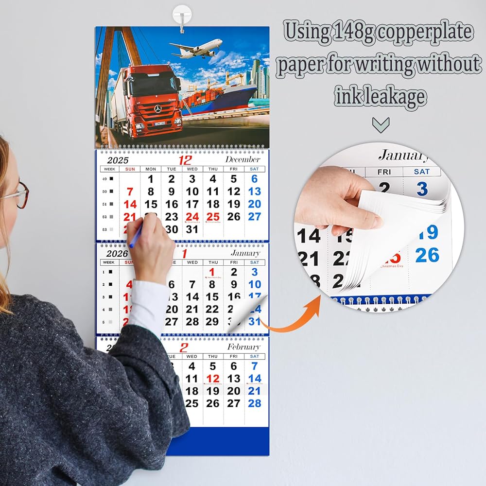 Liitrton Wall Calendar 2026 - 3 Month Calendar Display Large Wall Calendar with Thick Paper 33" x 13" Dec 2025- Jan 2027 Vertical Calendar Perfect for Your Busy Schedule (Truck)
