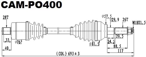 Caiman Rugged Rear CV Axle for Polaris 1333748, Ranger 1000 & XP 1000 2019-2021