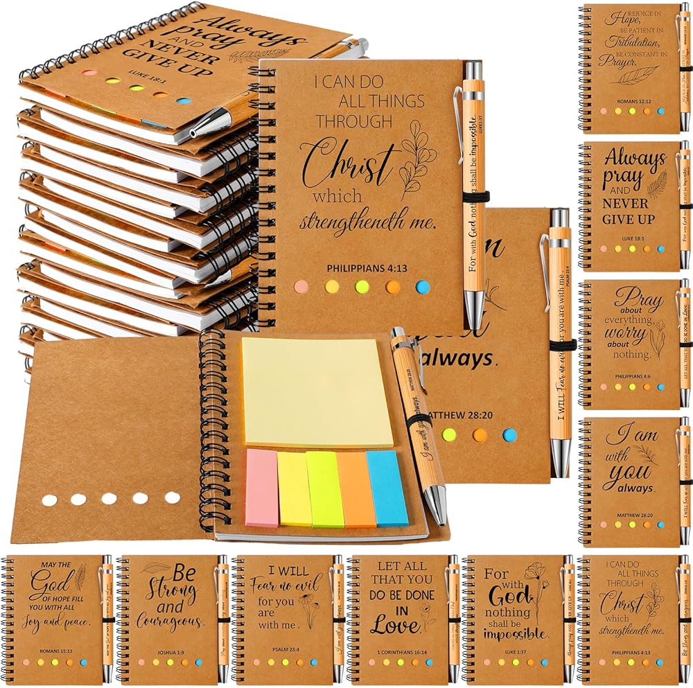 Zhanmai 30 Sets Christian Gift Spiral Notebook Bible Verse Prayer Journals Religious Notepad with Bamboo Ballpoint Pen Colored Sticky Index Tabs for Teacher Nurse Coworker Office (Bible Theme)