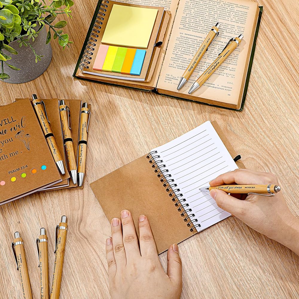 Quality Material: these pen and notepad set are made from quality paper material, providing a smooth writing surface for all your thoughts and ideas; The motivational bamboo ballpoint pen provides a comfortable grip and smooth ink flow, giving you an excellent writing experience