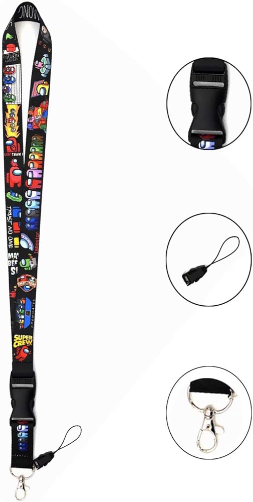 Gift for among us lover: These among us lanyards can be used as a keychain, to hold on an ID card, and even make stylish phone holders. The easy to use removable buckle effortlessly snaps on and snaps off items from the lanyard.Beyond that, for someone who loves among us in their life.It's a great gift.Cute design images with portable dimensions.