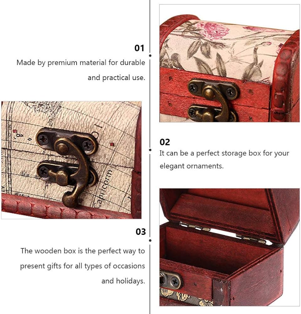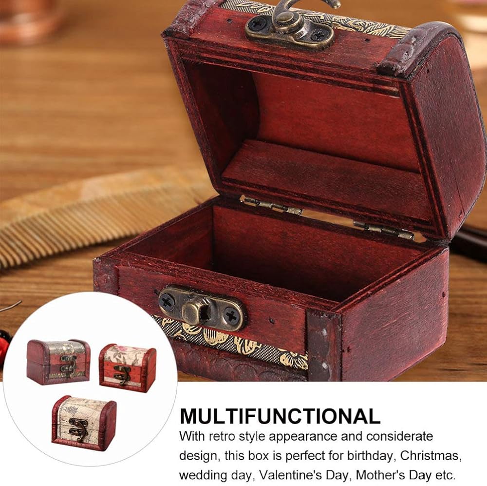 3Pcs Mini Wooden Keepsake Treasure Chest Trinket Box Retro Jewelry Storage Box Candy Boxes for Rings Necklace Earrings Packing Treasure Chest Box Treasure Chest Box