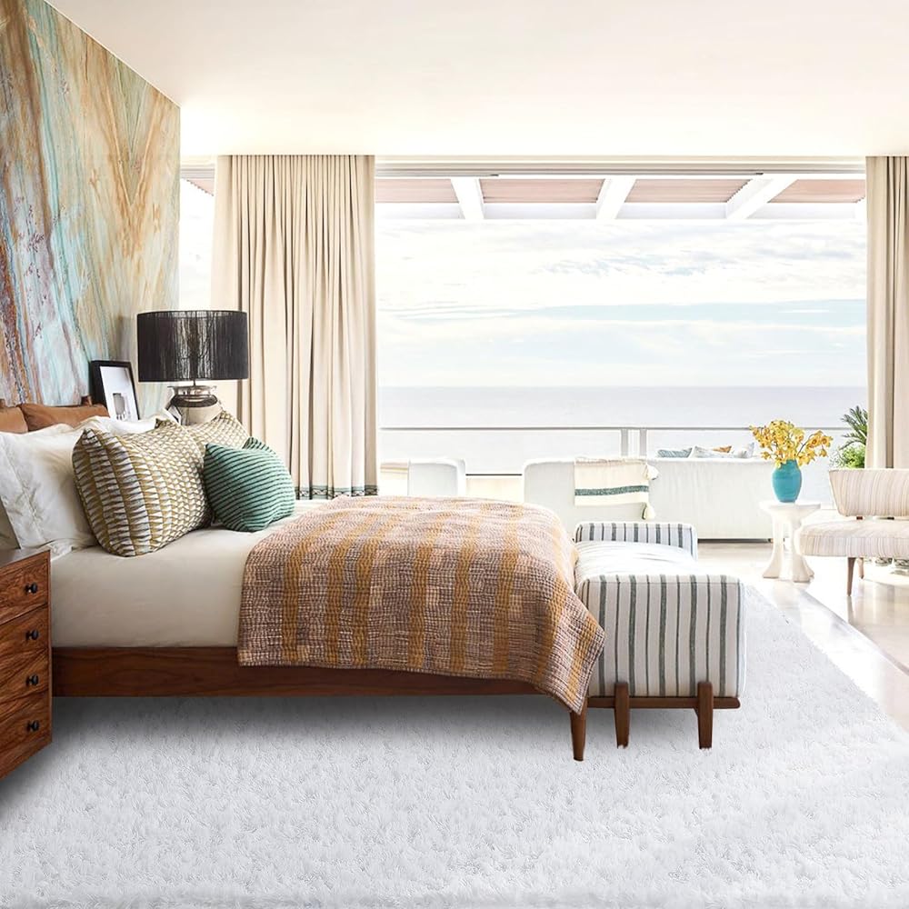 【Lifestyle Design】This shag rug is the focal point of home decor! The simple and stylish color design creates a warm and inviting atmosphere, creating a new luxurious place for your life, and the softest touch will make you feel incredibly relaxed.