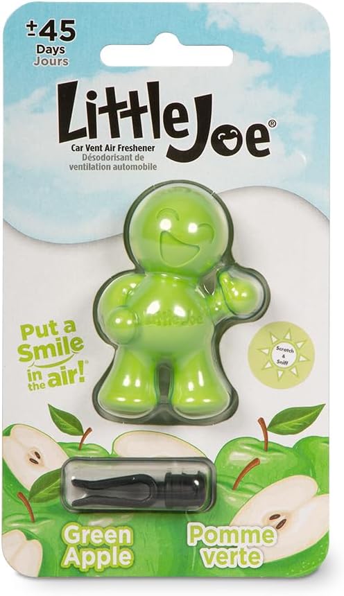 REFRESHING GREEN APPLE SCENT: Stoner Car Care's Little Joe car air freshener is easy to install and remove. It delivers an alcohol-free green apple scent without the use of toxic materials or harmful fragrances.