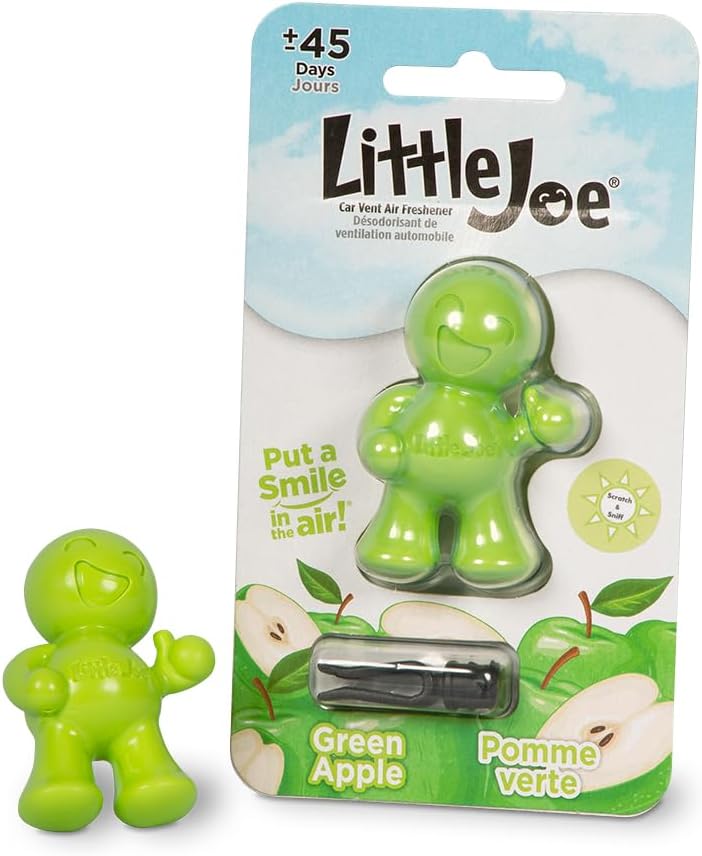 Little Joe 96416-6PK Green Apple Scent Car Air Freshener Vent Clip, Fights Odors for up to 45 Days, Long-Lasting Freshness, Cute Car Odor Eliminator, Pack of 6