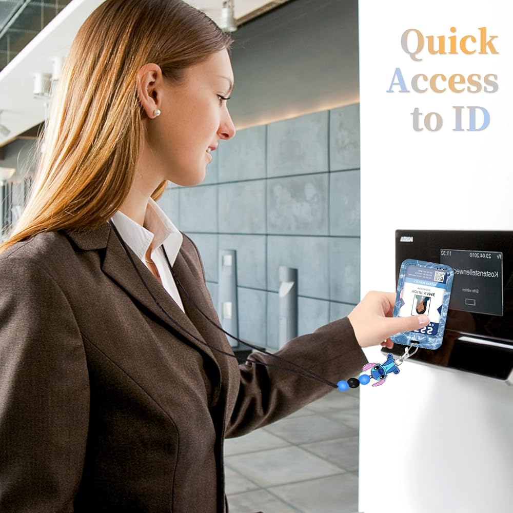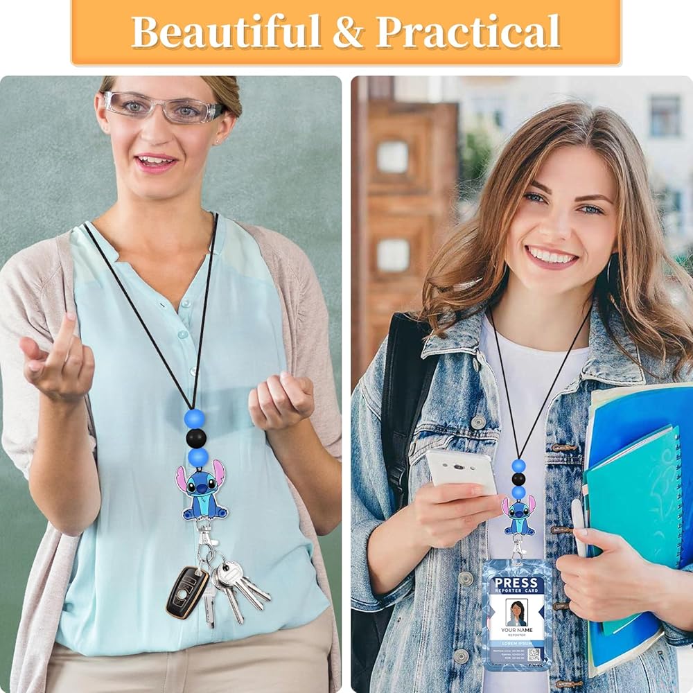 Teacher Lanyard for ID Badge Card, Cute Blue Women Men Beaded Breakaway Neck Lanyards Cartoon Name Tag Badges Holder Aesthetic Work Keys Accessories Gift