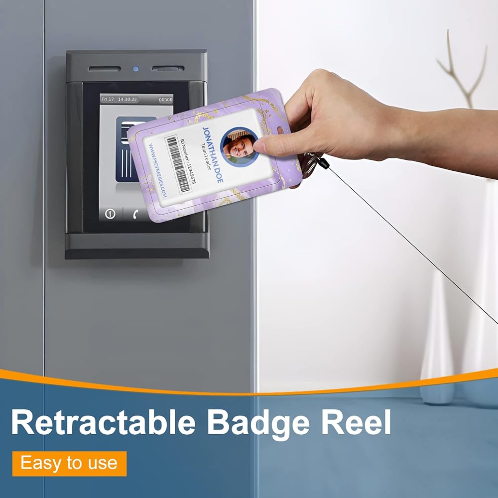 【Heavy Duty Badge Reel】23 inch retractable id badge reel, convenient to scan in and out of the office. Metal carabiner hooks & belt clip to firmly clip on belts, pockets, and backpacks.