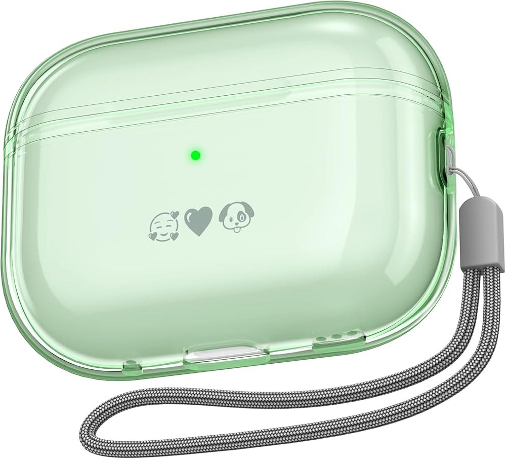NIUTRENDZ AirPods Pro 2 Case Cover Soft TPU Protective Skin with Lanyard [Front LED Visible] Compatible with AirPods Pro 2nd Generation 2022 (Green)