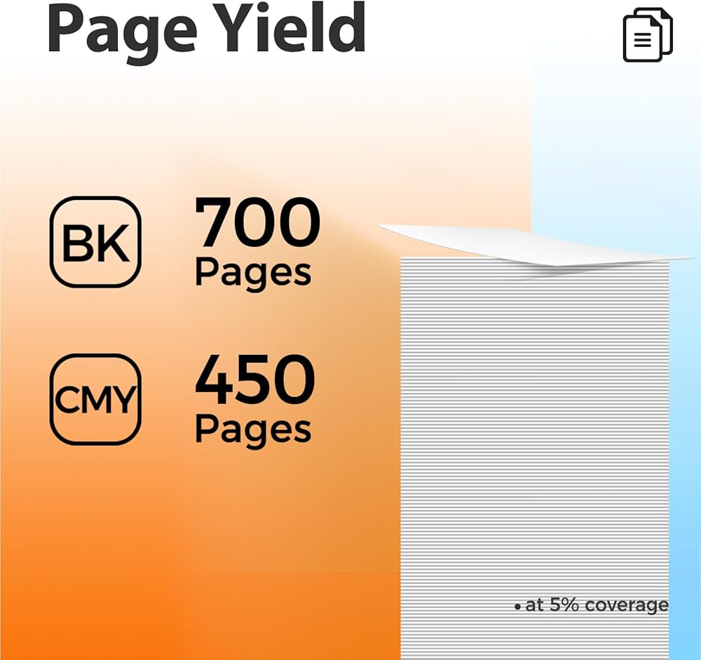Print More Pages with 67XXL Ink: Approximately up to 700 pages per 67 xxl black ink cartridge, up to 450 pages per 67 xxl color ink cartridge on A4/letter paper at 5% print coverage