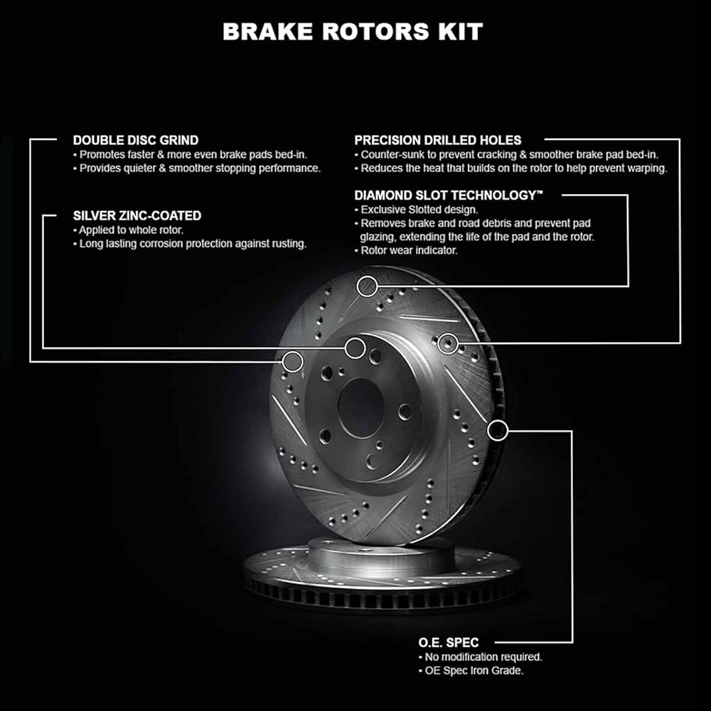 High Performance Brake Rotors: Made of G3000 grade cast iron with rust protection for ultimate rust protection. Built with O.E.M specifications in mind, no modification required.