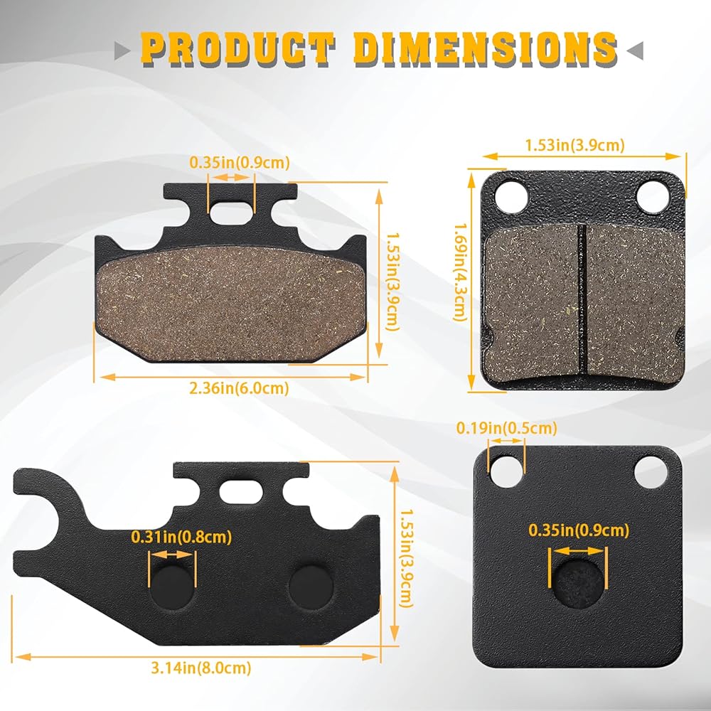 Front and Rear Brake Pad Fit for Yamaha Grizzly 400 450 Kodiak 400 YFM400FG YFM450FGH YFM450FGSE 4x4 YFM400A YFM400FAH YFM450FASE Wolverine 450 YFM450FX 2000-2010