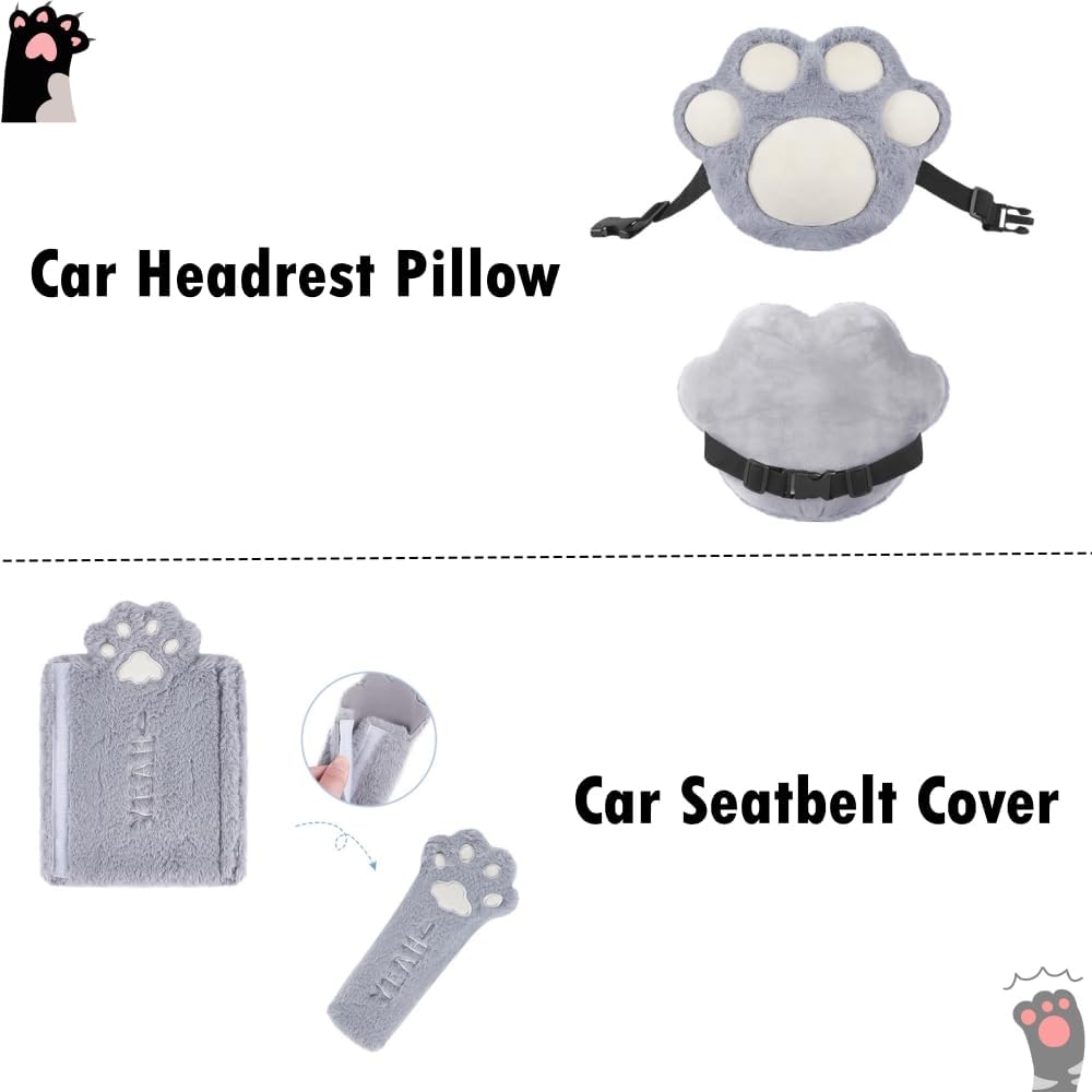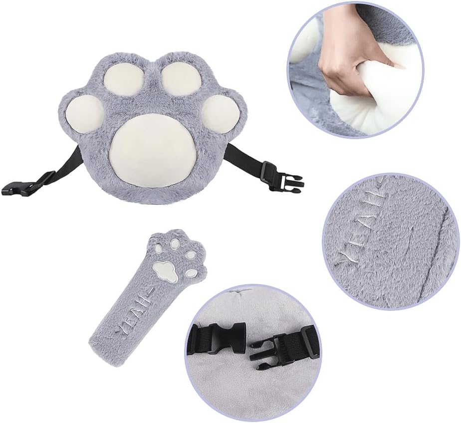 Cute Cat Paw Car Headrest Pillow and Seatbelt Cover Set Plush Bear Claw Car Neck Cushion With Seatbelt Shoulder Pad Cars Neck & Head Support Pillow and Seat Belt Cover for Airplane Long Journey