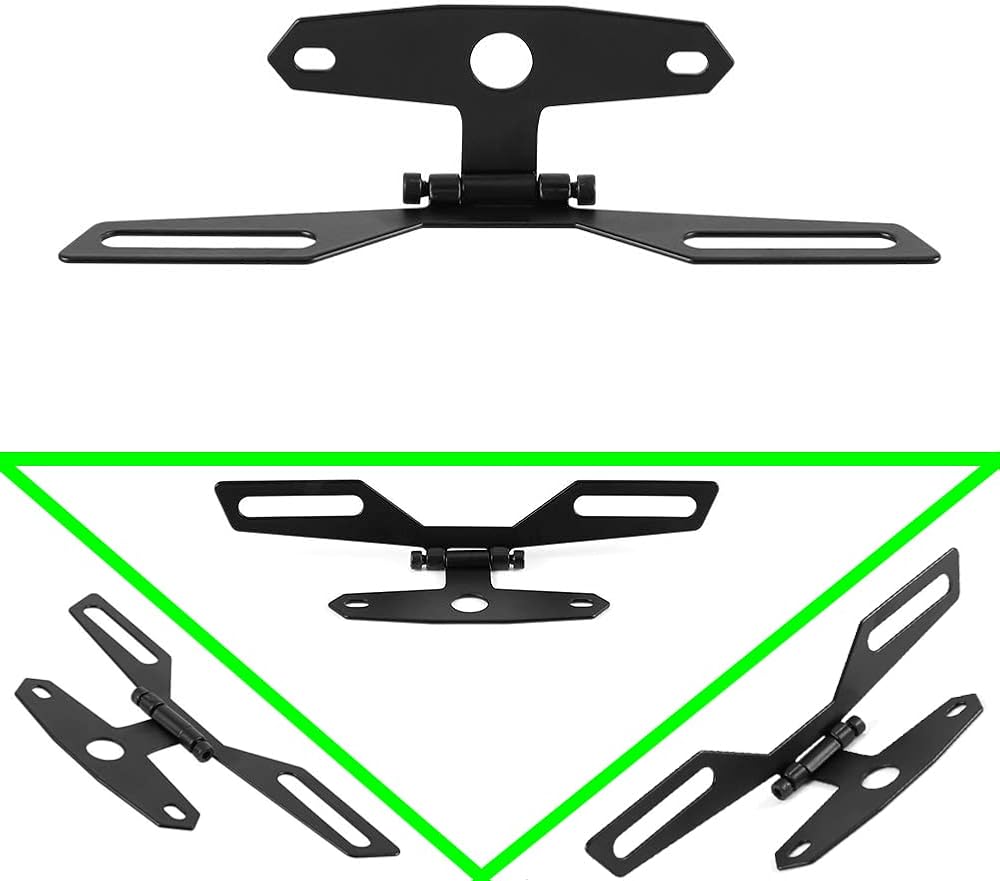 Foldable, this holder will not take up much of your spaces; This holder can mount with tail light/brake light(not included) and regular license plate