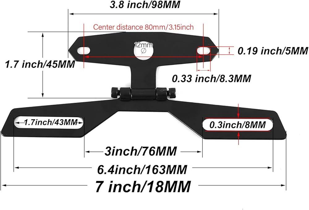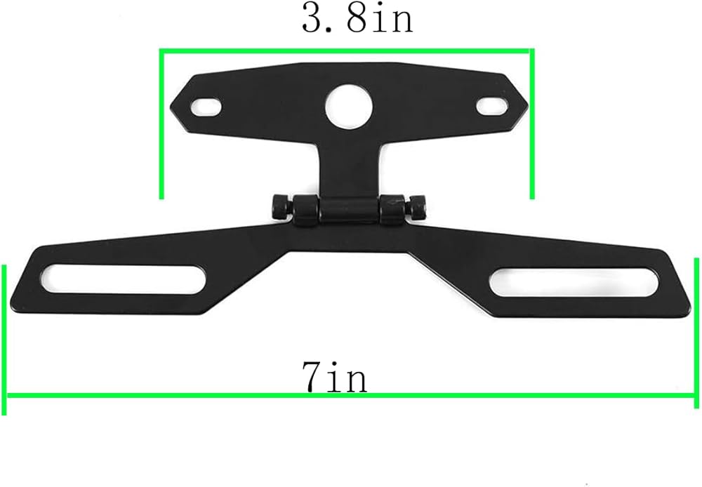 Adjustable Motorcycle License Plate Mount Holder Bracket is perfect suitable for dual sport applications, ATV, dirt bike or youth monkey bike. This holder can mount with tail lightand regular license plate.