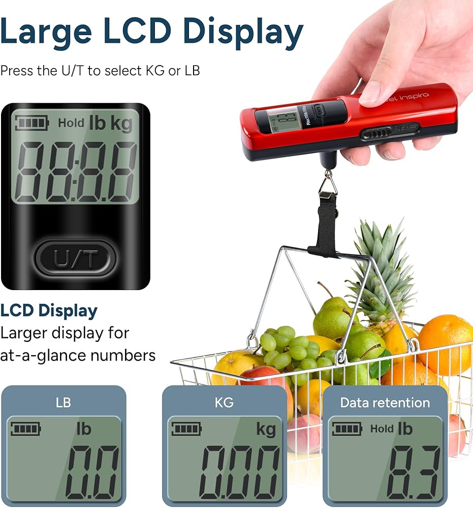 【EASY TO USE】 Only quickly push the side button 4-5 times, long press the U/T button to convert the unit lb/kg. Accurate measurement, Unit conversion, Overload warning, Tare function so you never pay excess baggage fees again!