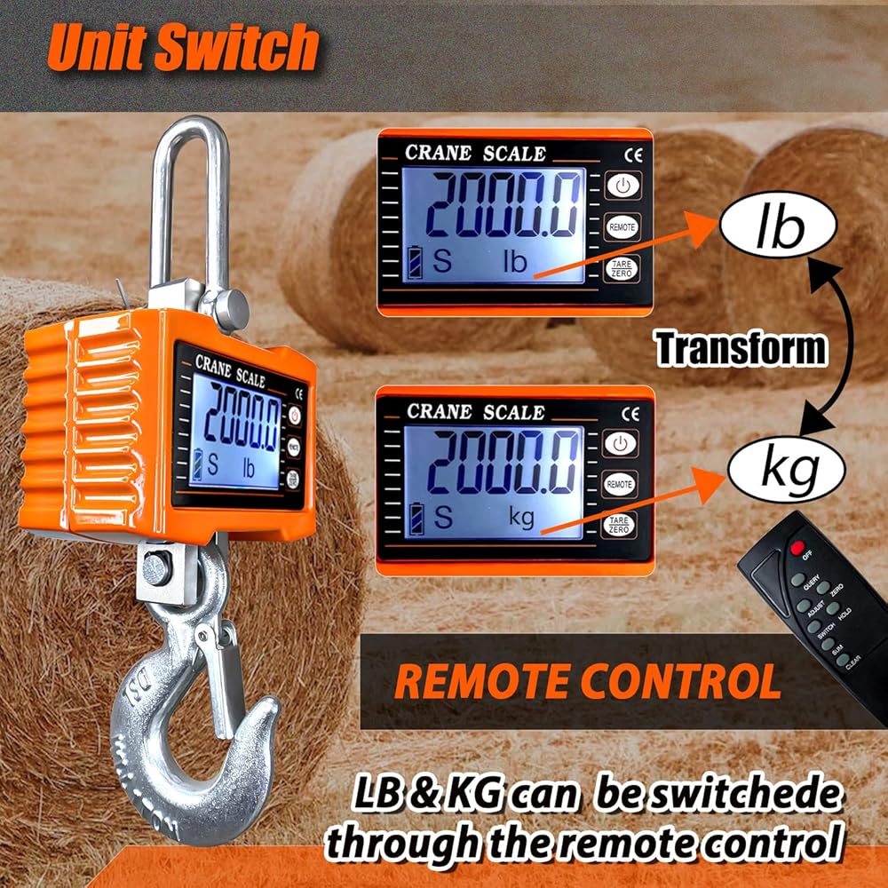 Hanging Scales Digital Weight, 2000LBS Crane Scale with Remote Control, High Precision Heavy Duty Industrial Scale with CE Certified for Farm, Deer, Hunting, Construction