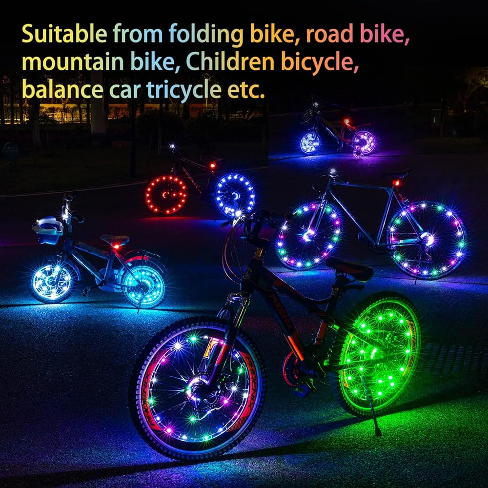 Lighting Mode:This color-changing bicycle wheel light has 16 modes. long press Power key It can be turned on or off bike lights.Long press Power key for to enter the Automatic flash mode.Short press once to switch one mode or color. Red, green, blue, light blue,Purple, yellow, white each flashing and full lighting.