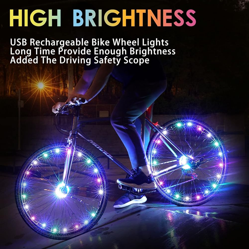 LED Bike Wheel Lights, 2-Tire Pack USB Rechargeable Bike Lights with Batteries Included, Best Bicycle Lights - Stocking Stuffer Birthday Gift for Kids, Girls, Boys, Adults