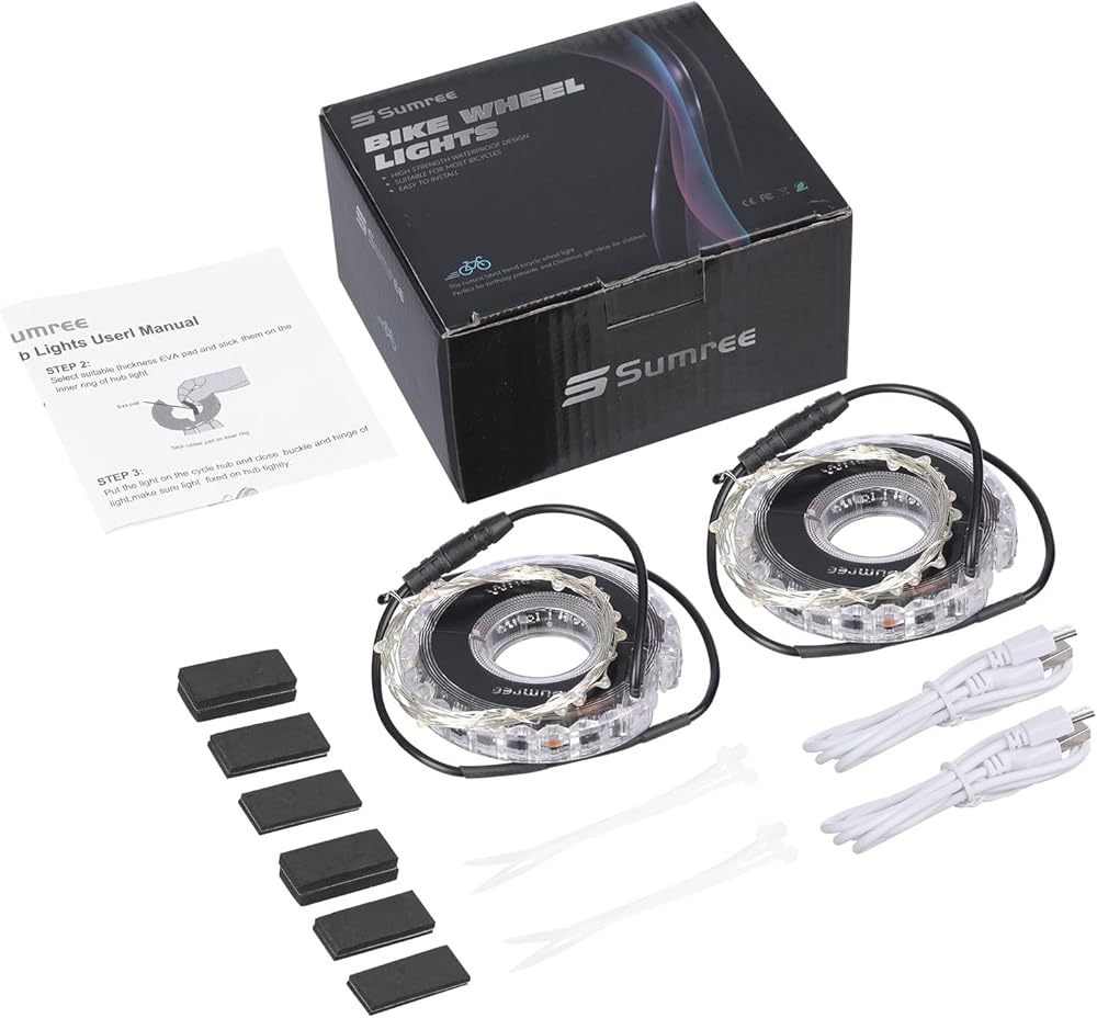 High Brightness:Sumree's latest USB rechargeable bicycle wheel light, batteries able to long time provide enough brightness of bicycle lights.Make bright around when driving, added the driving safety scope, Get Brighter and Visible from All Angles for Safety.