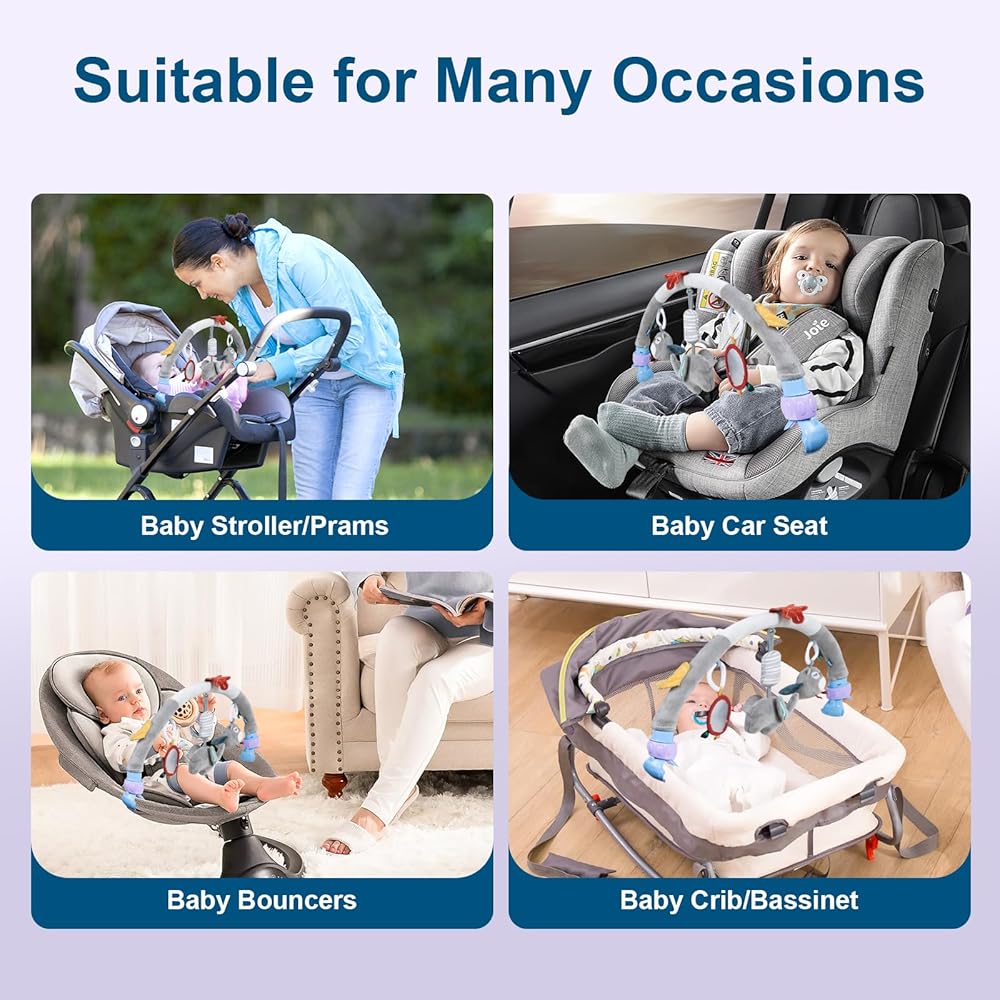 Multi-situation: Infant Car Seat Toys - Our baby toys 0-6 months is convenient to attach baby's crib,stroller,pram,car seats and bouncers by two large sturdy clips which allowing your baby to touch and play with them
