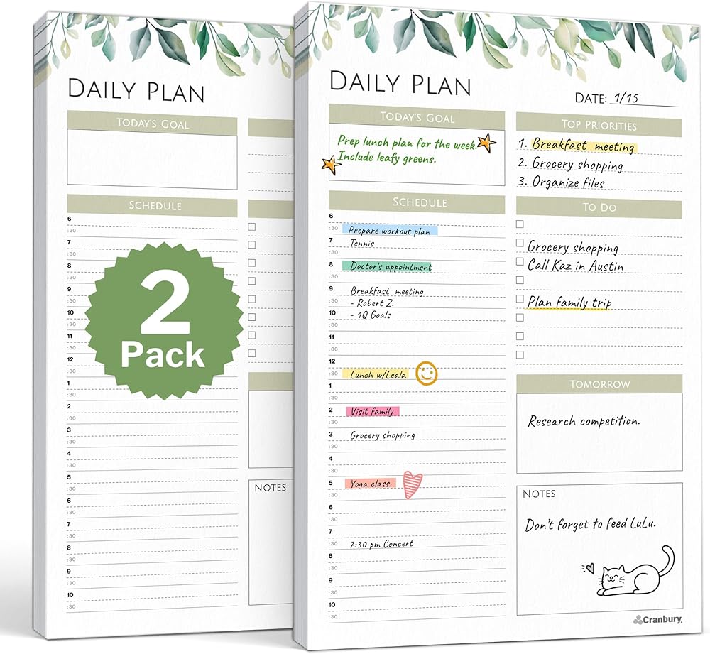 Cheerful Colors: Weekly planner pad with colorful design, Organize your weekly daily chore list, activities and accomplishments. Plenty space for daily planning. Undated for flexible usage, no waste.