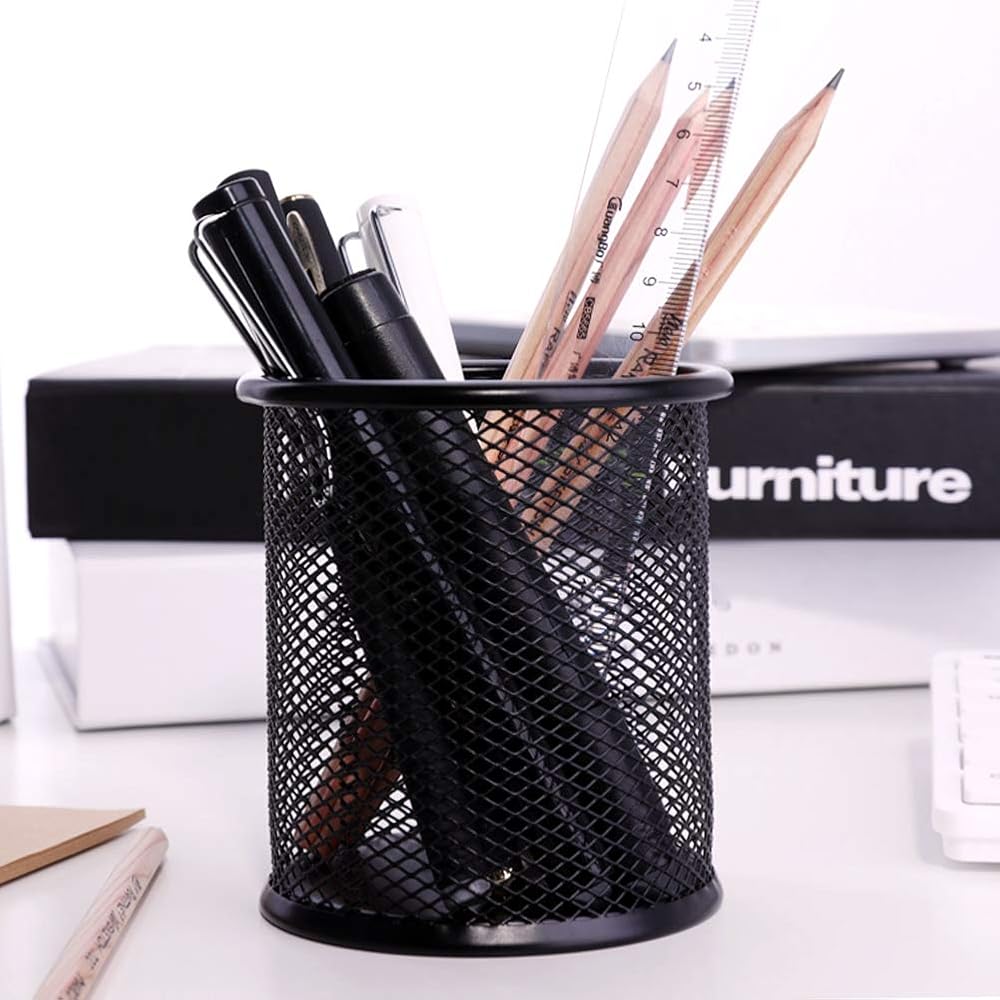 [Durable Metal] Round shaped metal pen and pencil holder, constructed in durable metal and coated in Black epoxy