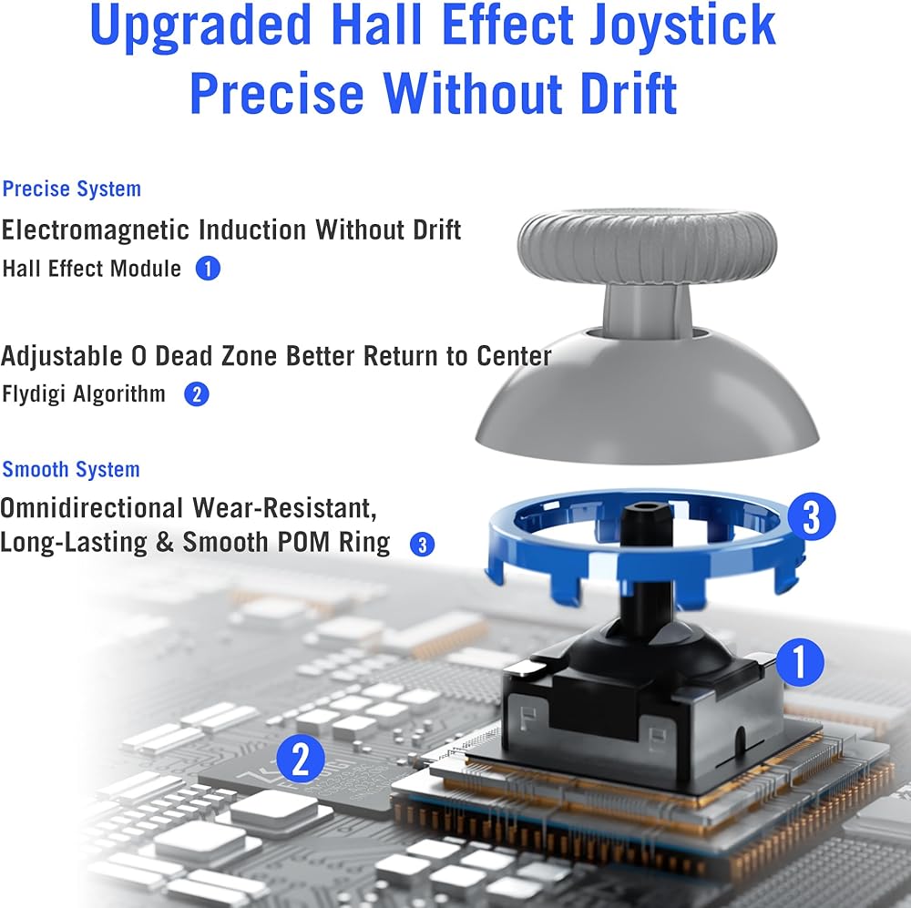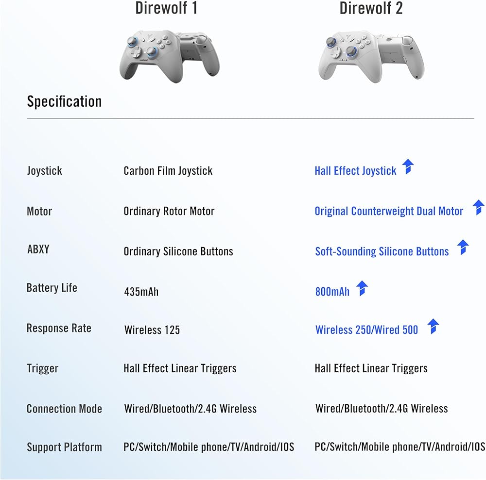 【Upgraded Hall Effect Joystick & Hall effect Triggers】The next top player is you! The 0.1MM level accuracy Hall effect triggers of DireWolf 2 provide you with a smooth and precise control. Coupled with the Hall effect joysticks that never get stick drift, Direwolf 2 will be the perfect assistant to your flawless gaming performance with this dual hall effect controller.