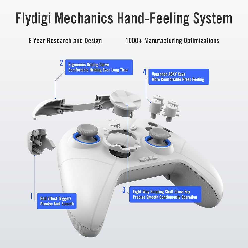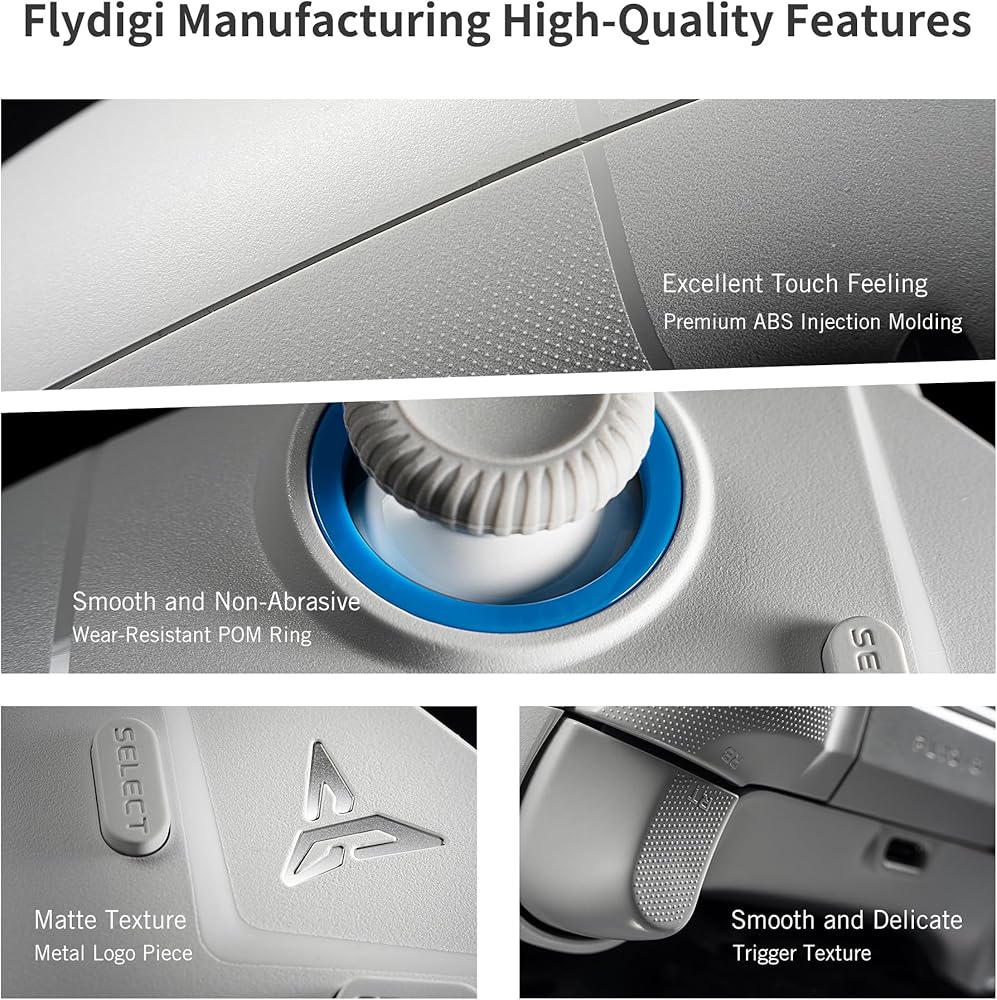 【Comprehensively Enhanced Tactile Sensation】Flydigi is dedicated to selecting premium materials, 1000+ times manufacturing optimization, and crafting top-notch controllers with excellent tactile feedback. The upgraded metal logo enhances the overall visual appeal. Equipped with POM ring for smooth and durable performance with this wireless controller. The well-positioned dual back buttons M1M2 are easy to trigger. Offering high-end quality at an affordable price point!