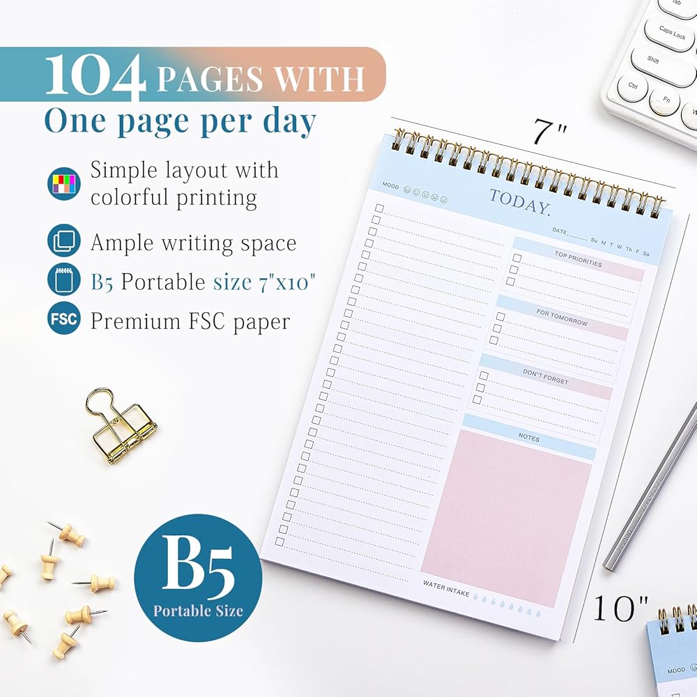 JUBTIC To Do List Notepad - Daily Planner Pad CheckList Organizer Agenda Pad for Work,Daily Schedule Notebook Habit Tracker for Task Management Suitable for School, Office and Home -7" x 10"