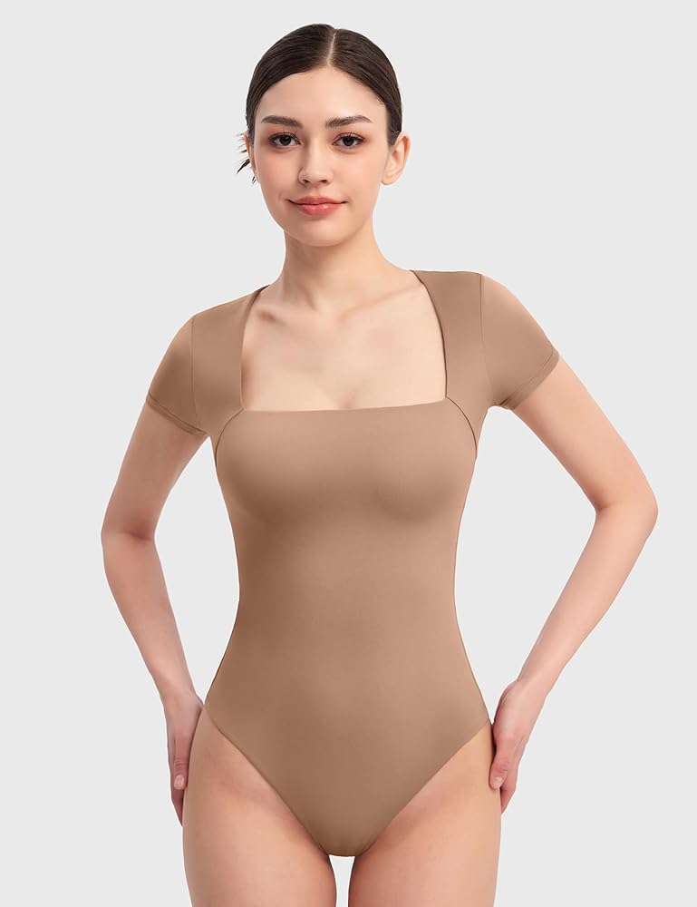ELEVATE YOUR BASICS: PUMIEY has you covered when you're in need of elevated basics. This bodysuit features a square neckline and short sleeves for a perfect blend of coverage and visibility. The material is a sustainable blend that feels lightweight, ultra-breathable and soft enough to live in, which is perfect for warmer weather.