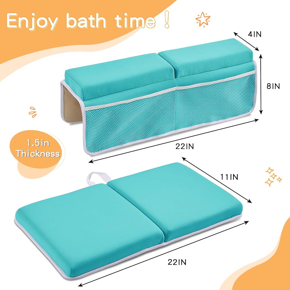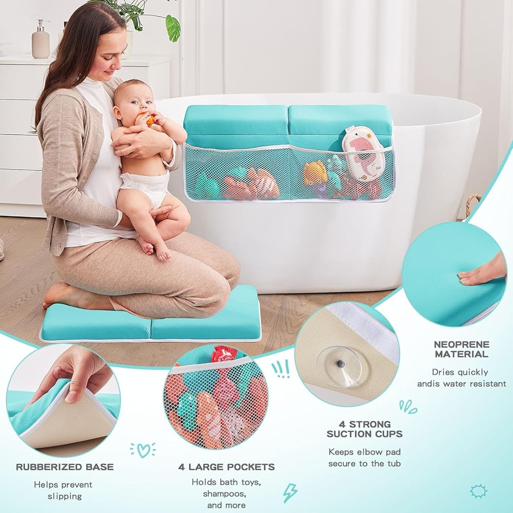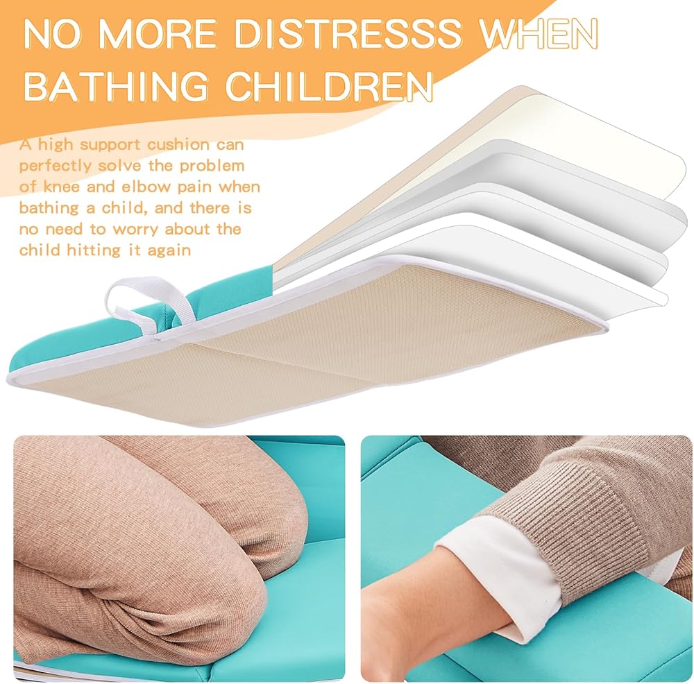🛁【EASY TO CLEAN AND CONVENIENT TO STORE】:Our kneeling pads for bathing baby are machine washable! You can also let them air dry by attaching the kneeler to the elbow rest to keep your floor clear, or hang the pads by the hook for quicker drying time!