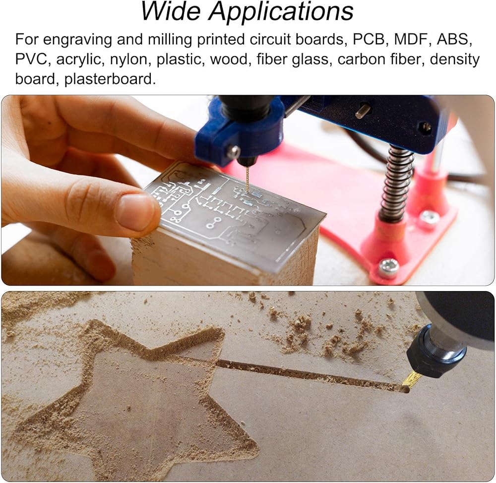 Wide Applications: Suitable for engraving and milling printed circuit boards, PCB, MDF, ABS, PVC, acrylic, nylon, plastic, wood, fiber glass, carbon fiber, density board, plasterboard, etc. Use on CNC machining centers, machine tools, precision engraving machines and other equipment.