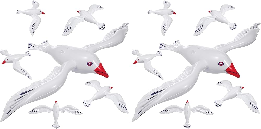 Large Inflatable Seagull Ornaments: 🌊🕊️ Jumbo Flying Seagull Toy Blow Up Birds Decorations for Birthday Baby Shower Wedding Beach Pool Party. The inflatable seagull size is large for catching eyes, but this inflatable seagull is light in weight.