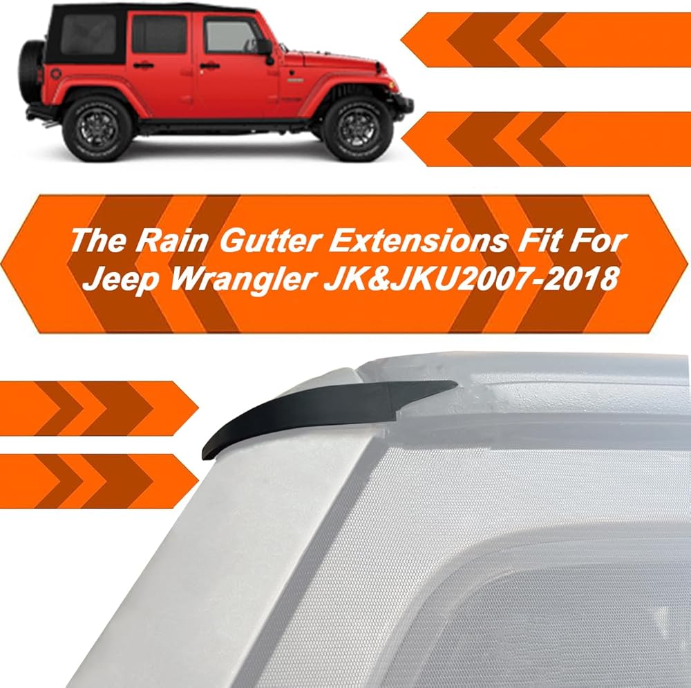 ▶Effective Water Management: Rain gutter extension perfect performance on Hard-Top for Jeep Wrangler JK, the rain gutter extensions facilitate smooth water flow through the roof Hard-Top while preventing water from passing through the driver and passenger sides, keeping the interior dry.