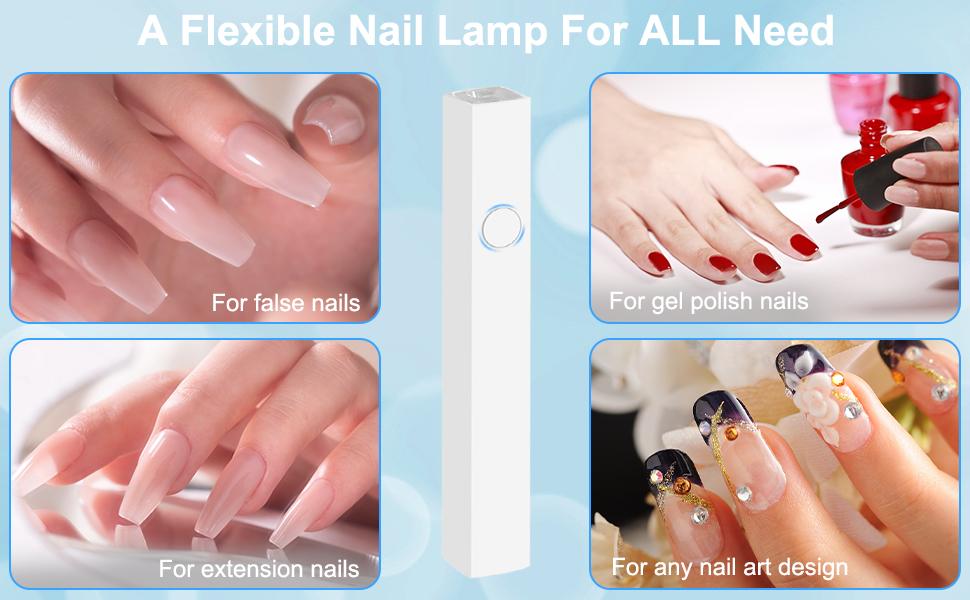 【Lightweight and Portable Mini Nail Light】This mini led nail lamp is small and light, with a minimalist design of 4.3*0.6*0.6 inches, it can be carried anywhere, whether you are on a business trip or traveling, you can easily put it in your backpack without any pressure, and enjoy manicure anytime, anywhere, Bring you a different manicure experience